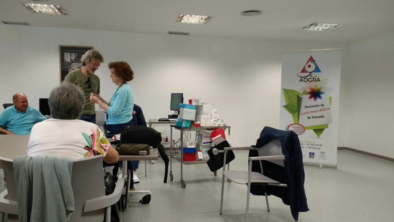 Taller de ostomias de AOGRA y Escuela de Pacientes con la UGC de cirugía y digestivo del Hospital Campus de Salud y la UGC del centro de atención primaria de Armilla celebrado en el Hospital del PTS esta tarde.